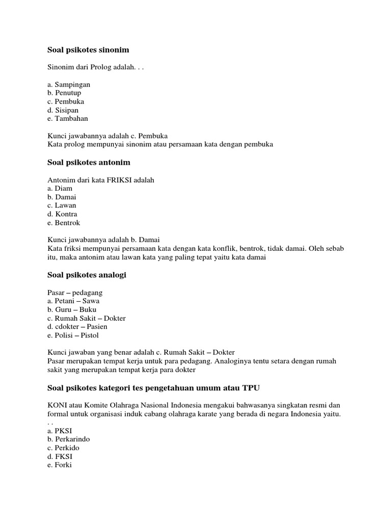Soal Dan Jawaban Tes Psikologi Kabar Sip